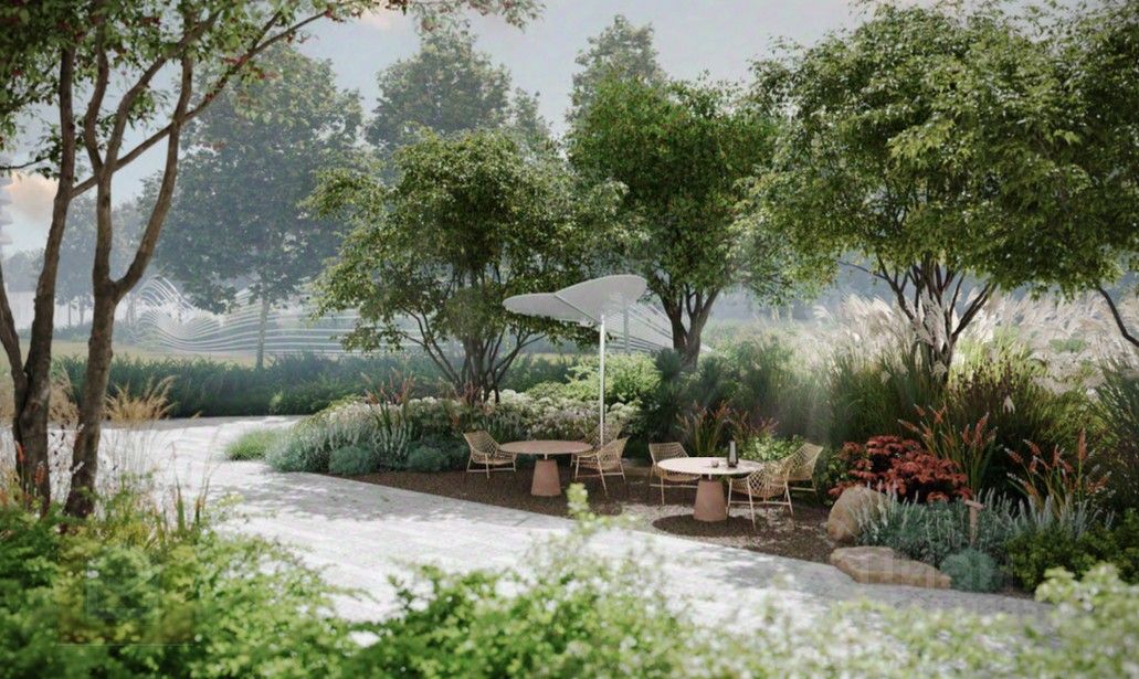Концепция включает тщательное зонирование внутренней территории площадью 11,1 га. Проект был разработан ведущим ландшафтным бюро DеrеvоРаrk и удостоен золотого диплома от АЛАРОС. В рамках ландшафтного озеленения появятся сады и парки: ''Сад тихого отдыха'', ''Сад снов'', ''Ландшафтный парк'', ''Крымский лес-парк''. Арт-объекты, фонтаны, искусственный пруд и декоративные водоемы создадут атмосферу уюта и спокойствия.