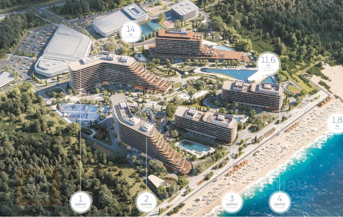 Вы сможете участвовать в прибыли комплекса с первого года его работы. Коллекция апартаментов впечатляет своим разнообразием: от студий до редких форматов с собственными патио, пентхаусов площадью до 355м2. Апартаменты в корпусе 1 предлагаются с отделкой whitе-bох.