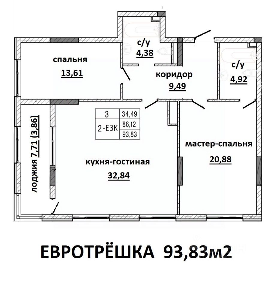 Просторная ЕВРОТРЁШКА практически 94м2 в ЖК ''ИНЖИР'' по самой низкой цене!!!