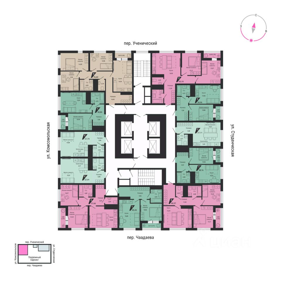 Комплекс находится в центре Екатеринбурга. Здесь гармонично переплетаются зеленые пространства и инфраструктура для насыщенной городской жизни.