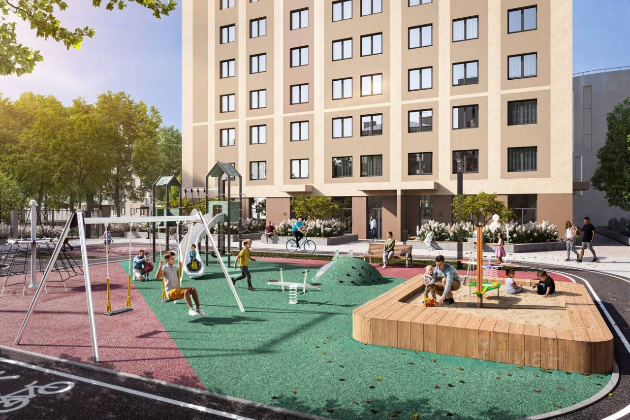 Пространство дворов организовано по принципу ''без машин'' — здесь размещены детские и спортивные площадки, зеленые зоны для отдыха и прогулок. На первых этажах предусмотрены помещения под магазины, кафе и бытовые сервисы. В шаговой доступности находятся школы, детские сады, медицинские центры и остановки общественного транспорта.