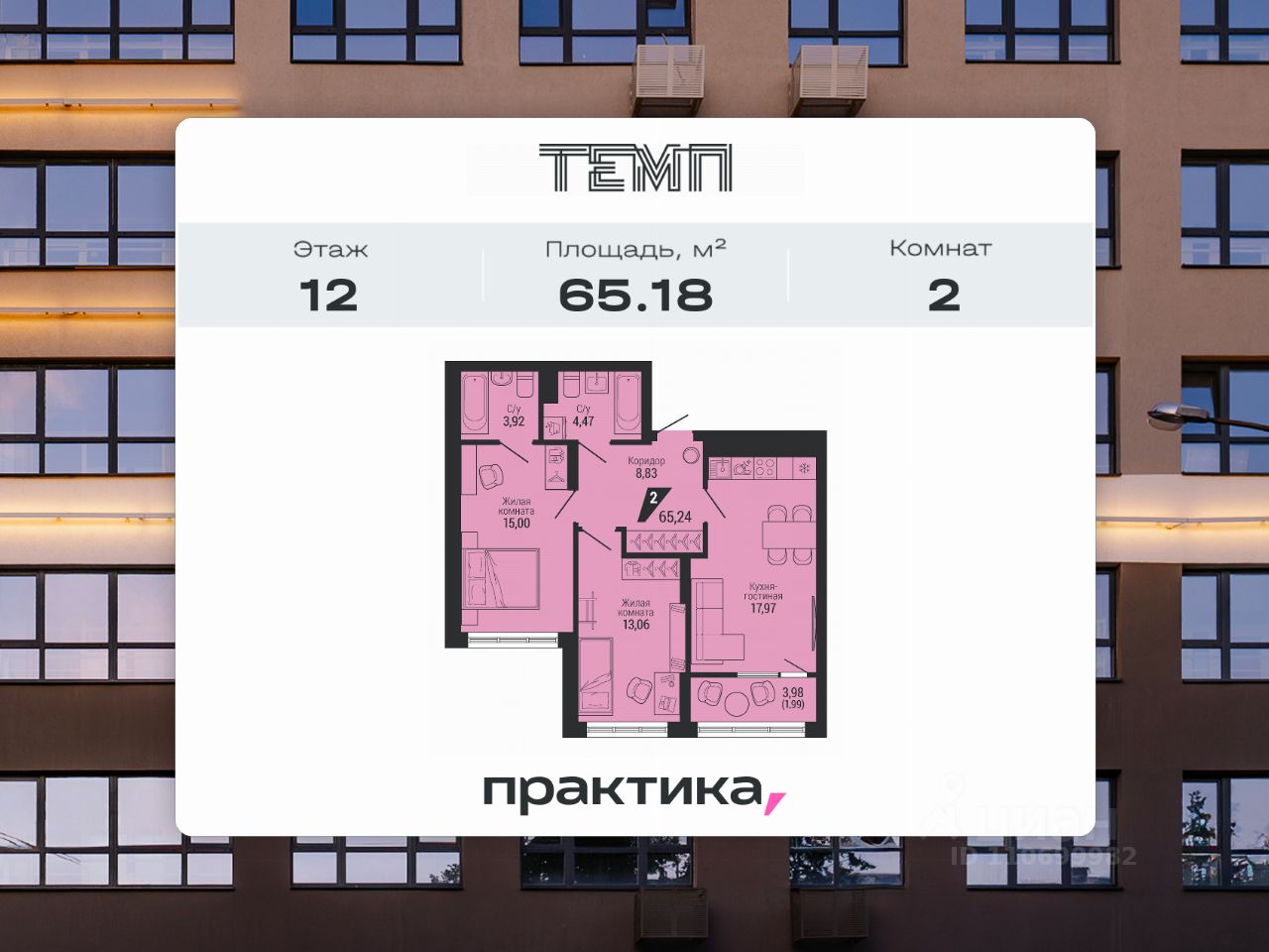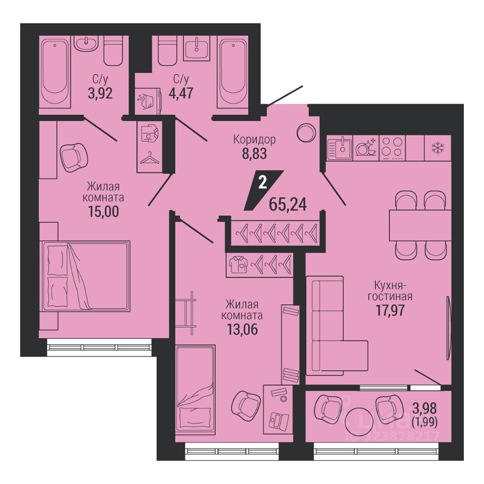 Общая площадь65,18 м2