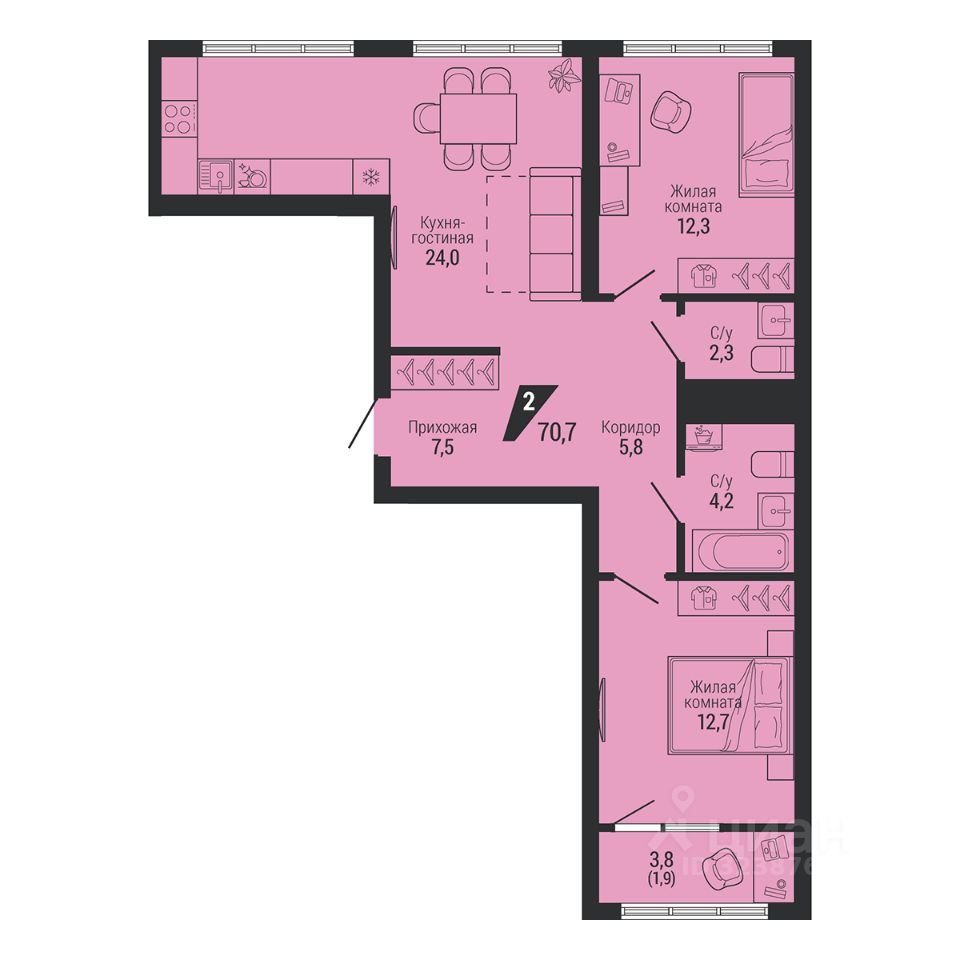 Общая площадь70,7 м2