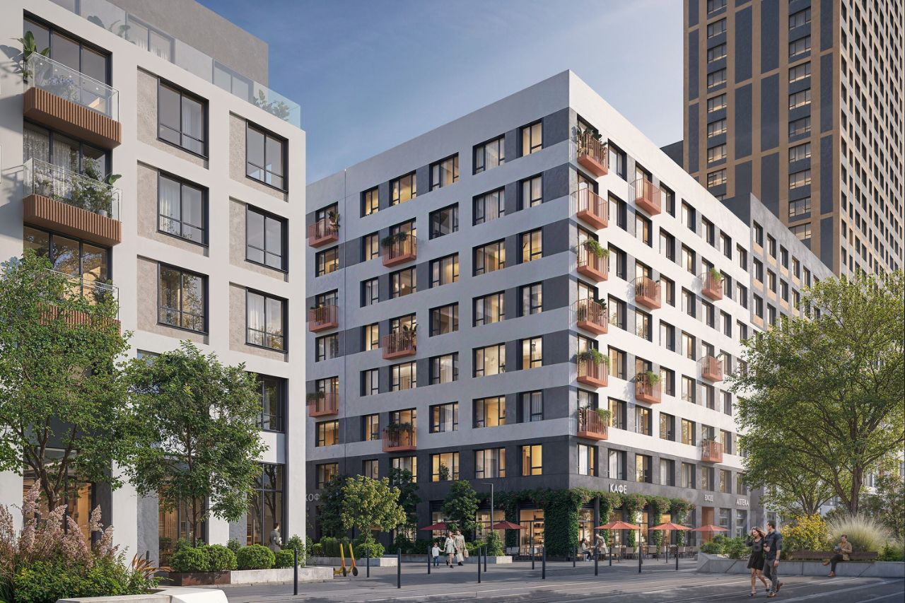 Пространство двора разделено на продуманные зоны: современные спортивные площадки для занятий на свежем воздухе, игровые комплексы для детей разных возрастов и уединенные лаунж-зоны с эргономичной мебелью для спокойного отдыха.
