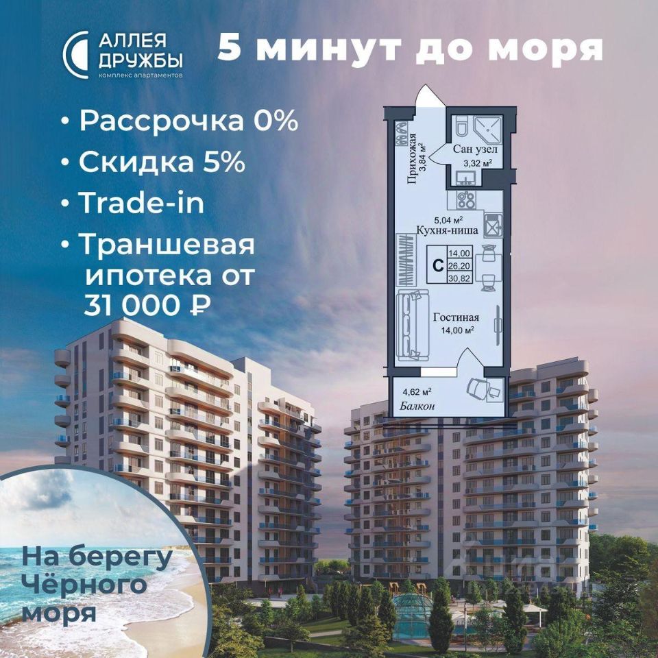 * 5 мин до моря пешком, планировки от 30 кв.м. * Высота потолков 3 м , предчистовая и чистовая отделка * Ипотека от СБЕРБАНКА * Доходность инвестиций от 30% годовых. * Сдача в аренду от управляющей компании (доверительное управление) позволяет получать доход от сдачи апартаментов без вашего участия * Безопасная сделка по ФЗ-214/эскроу-счёта