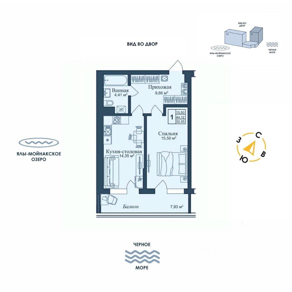 Общая площадь52,05 м2