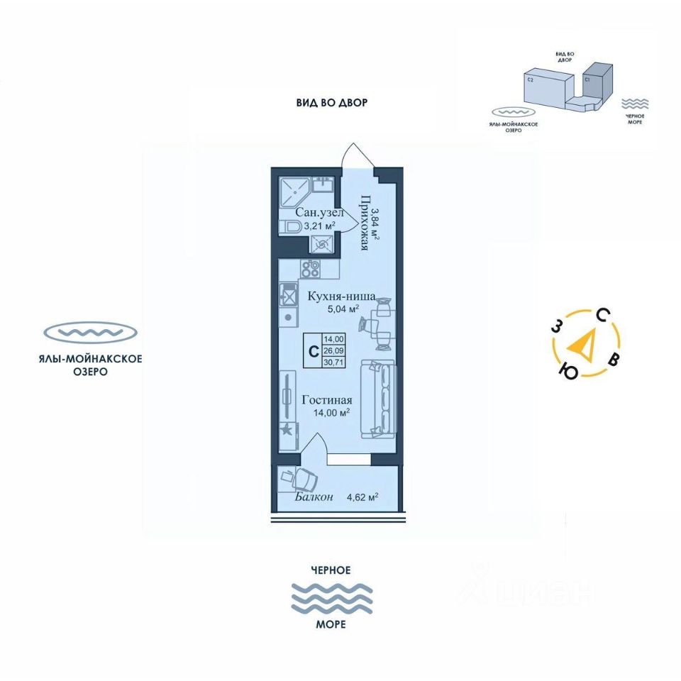 Общая площадь30,71 м2