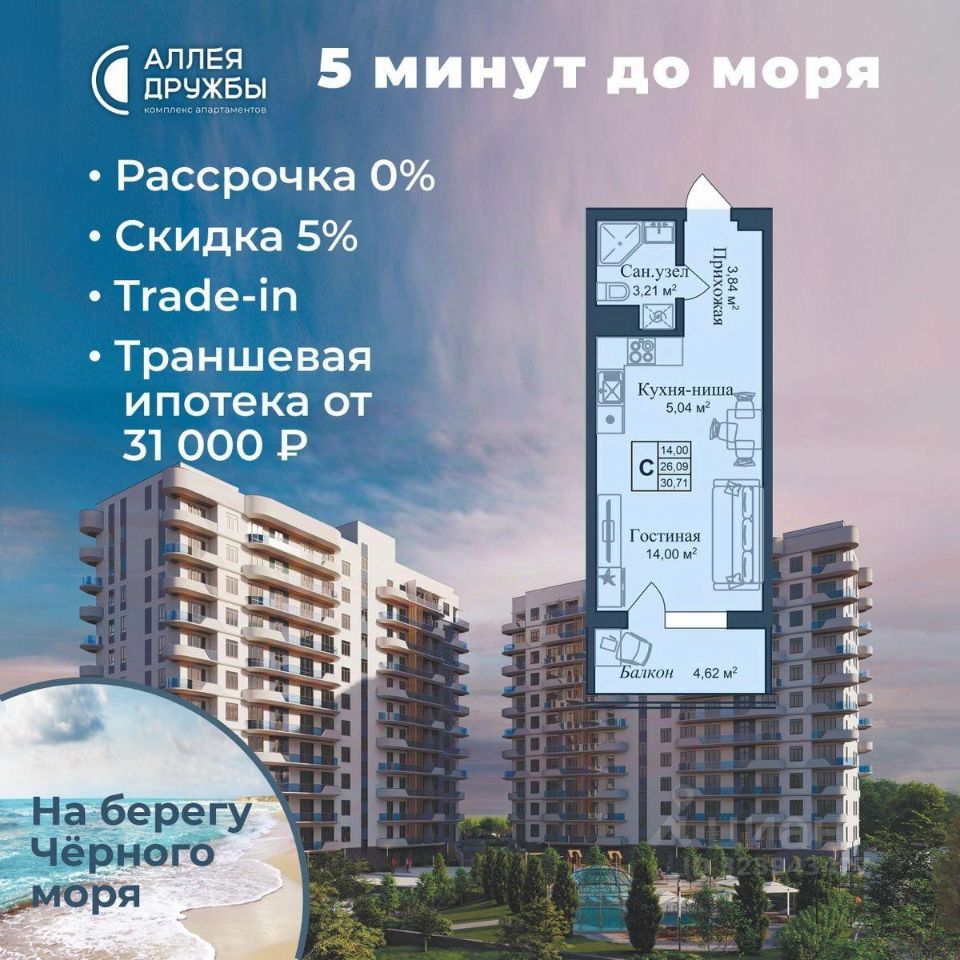 * 5 мин до моря пешком, планировки от 30 кв.м. * Высота потолков 3 м , предчистовая и чистовая отделка * Ипотека от СБЕРБАНКА * Доходность инвестиций от 30% годовых. * Сдача в аренду от управляющей компании (доверительное управление) позволяет получать доход от сдачи апартаментов без вашего участия * Безопасная сделка по ФЗ-214/эскроу-счёта