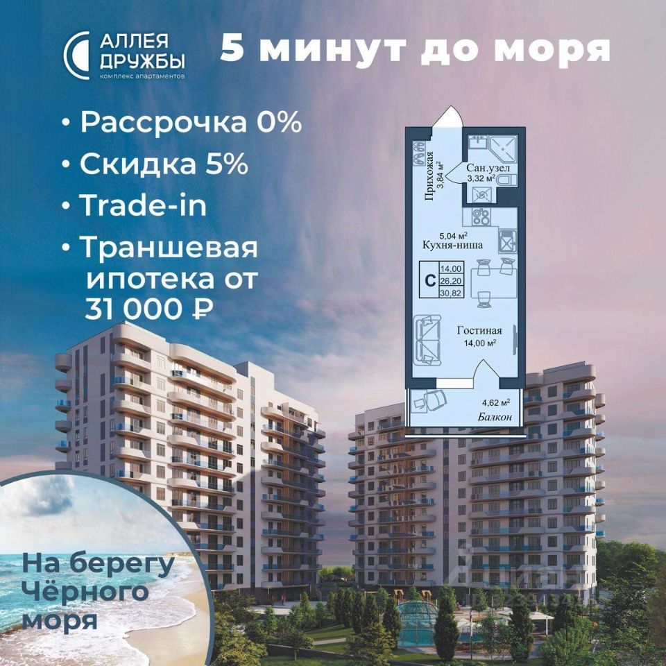 * 5 мин до моря пешком, планировки от 30 кв.м. * Высота потолков 3 м , предчистовая и чистовая отделка * Ипотека от СБЕРБАНКА * Доходность инвестиций от 30% годовых. * Сдача в аренду от управляющей компании (доверительное управление) позволяет получать доход от сдачи апартаментов без вашего участия * Безопасная сделка по ФЗ-214/эскроу-счёта