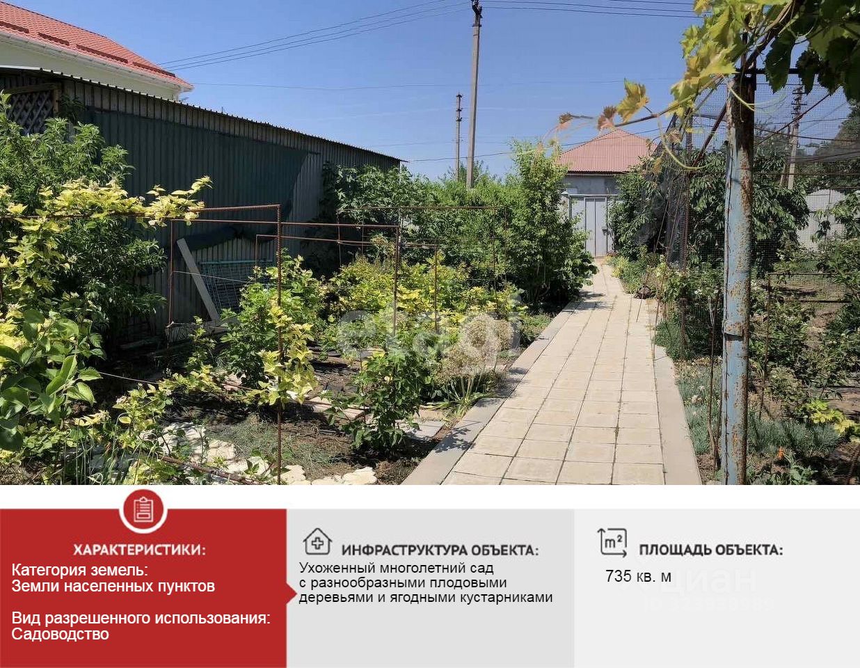 Ключевой особенностью объекта является ухоженный многолетний сад с разнообразными плодовыми деревьями и ягодными кустарниками, включая яблони сортов ''Чемпион'' и ''Семеренко'', черешню, алычу, сливу, персик, инжир, хурму, грушу и абрикос. Из ягодных культур присутствуют малина, ежевика, клубника и виноград, что обеспечивает сезонную урожайность и значительную экономию на продуктах. Участок полностью огорожен по периметру забором с воротами.