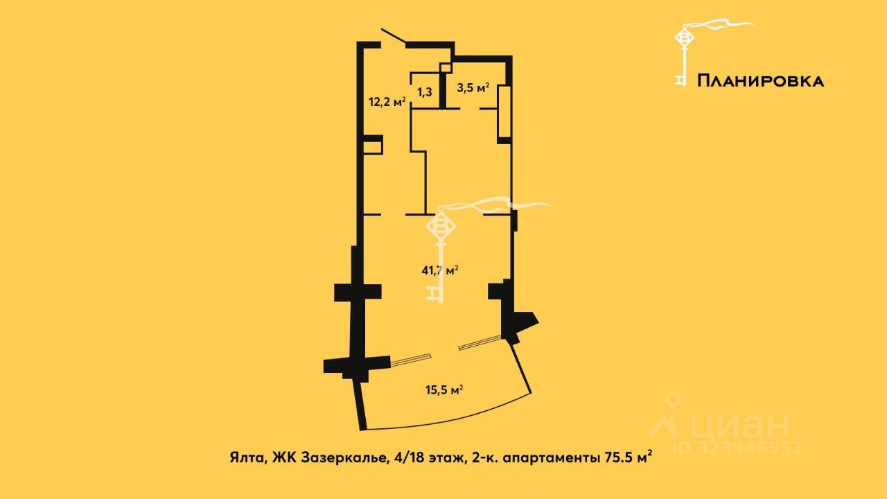 Дизайнерские 2-к. апартаменты площадью 75 м² с современным ремонтом, расположеные на четвертом этаже 18-этажного многофункционального комплекса ''Зазеркалье'', всего в 4 минутах пешей прогулки от пляжа и 7 минутах от набережной Ялты.