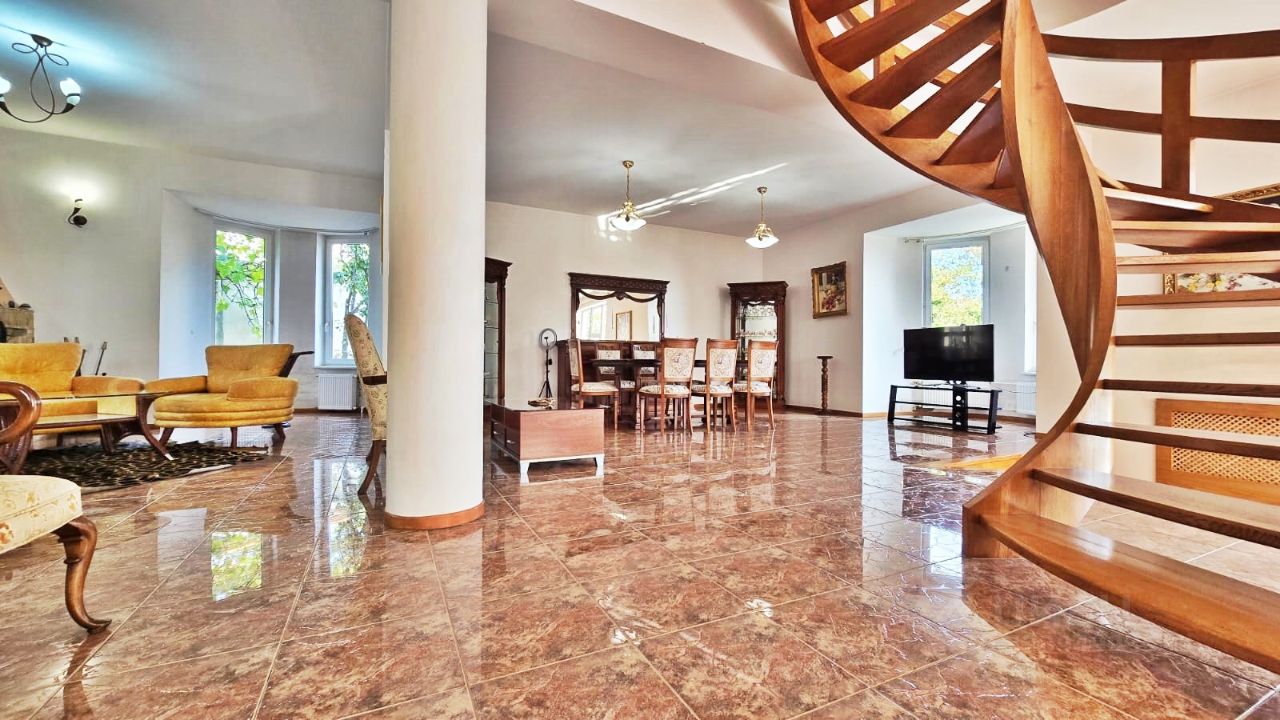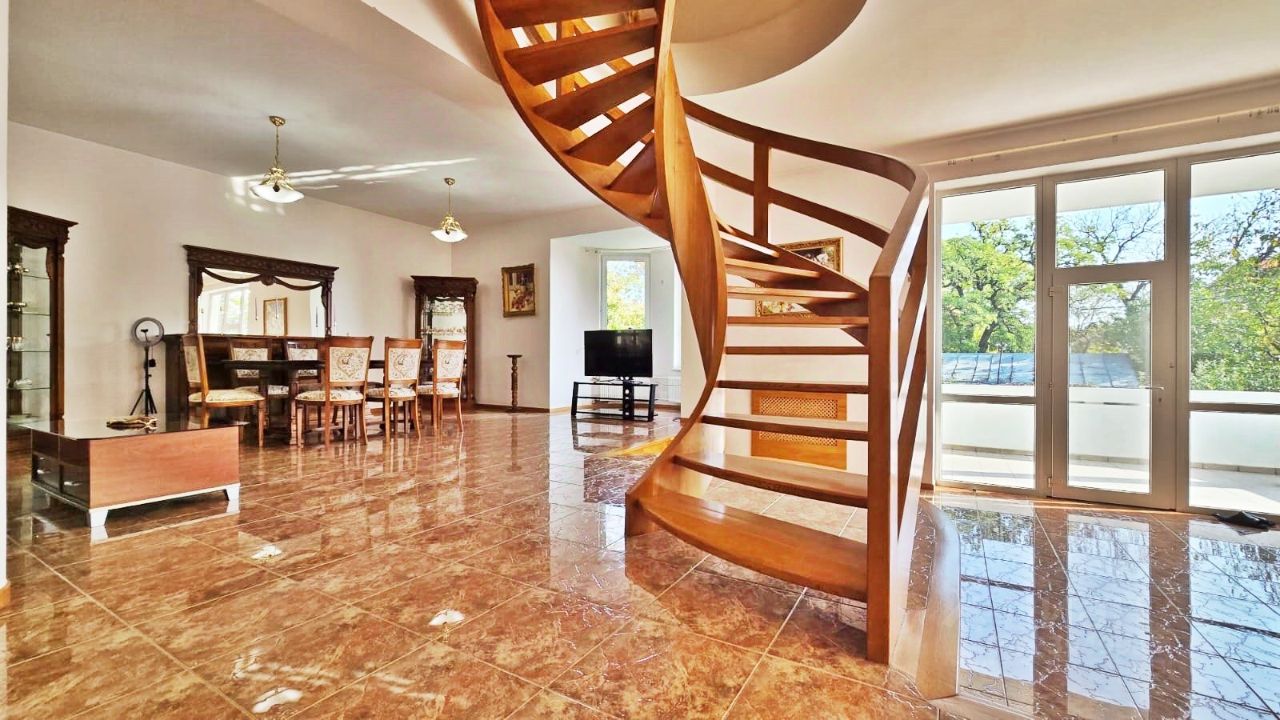 Первый этаж: - Просторная гостиная, столовая, каминная зона (с действующим камином на дровах), кабинет, санузел, гараж на два автомобиля.