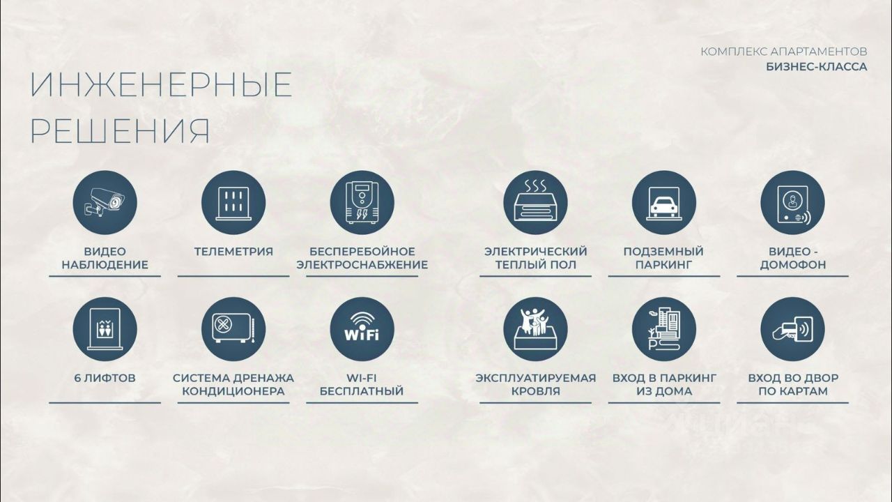 БЕЗОПАСНОСТЬ И ТЕХНОЛОГИИ СПОКОЙСТВИЯ: •Закрытая территория, двор без машин •Система контроля доступа (строго по электронным пропускам) •Подземный паркинг с тремя типами машиномест •Выделенные места для велосипедов •Камеры видеонаблюдения •Круглосуточный ресепшн •Телеметрия - автоматический сбор и передача данных с приборов учета апартамента минимизирует ошибки и мошенничество •Система умного апартамента с дистанционным управлением