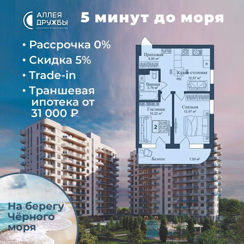 * 5 мин до моря пешком, планировки от 30 кв.м. * Высота потолков 3 м , предчистовая и чистовая отделка * Ипотека от СБЕРБАНКА * Доходность инвестиций от 30% годовых. * Сдача в аренду от управляющей компании (доверительное управление) позволяет получать доход от сдачи апартаментов без вашего участия * Безопасная сделка по ФЗ-214/эскроу-счёта