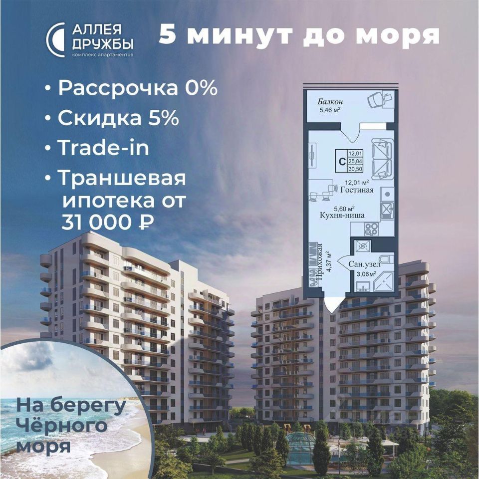 * 5 мин до моря пешком, планировки от 30 кв.м. * Высота потолков 3 м , предчистовая и чистовая отделка * Ипотека от СБЕРБАНКА * Доходность инвестиций от 30% годовых. * Сдача в аренду от управляющей компании (доверительное управление) позволяет получать доход от сдачи апартаментов без вашего участия * Безопасная сделка по ФЗ-214/эскроу-счёта