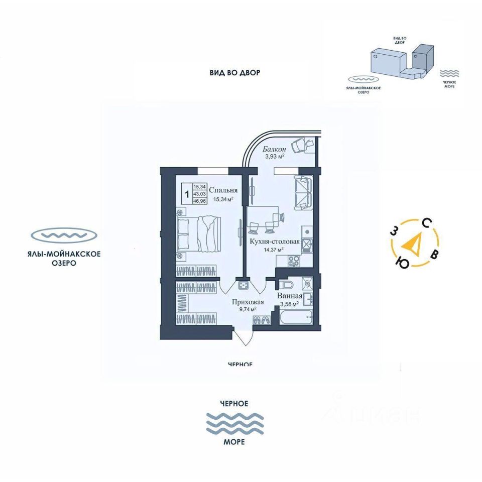 Общая площадь46,96 м2