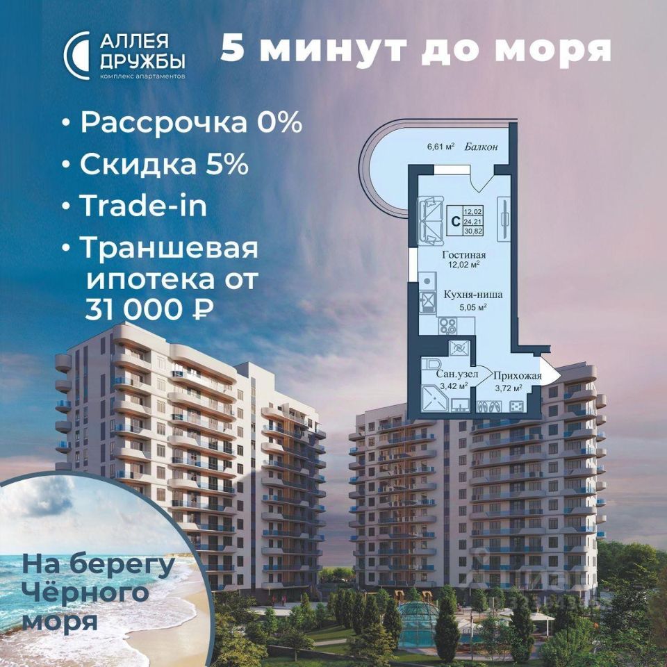 * 5 мин до моря пешком, планировки от 30 кв.м. * Высота потолков 3 м , предчистовая и чистовая отделка * Ипотека от СБЕРБАНКА * Доходность инвестиций от 30% годовых. * Сдача в аренду от управляющей компании (доверительное управление) позволяет получать доход от сдачи апартаментов без вашего участия * Безопасная сделка по ФЗ-214/эскроу-счёта