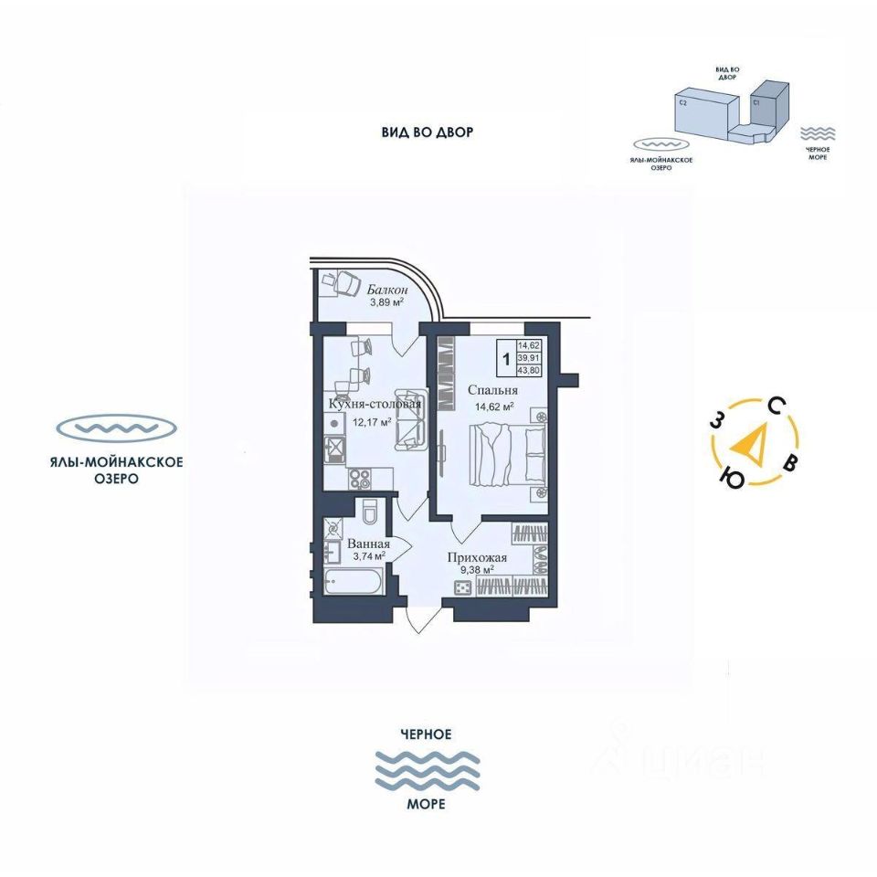 Общая площадь43,8 м2