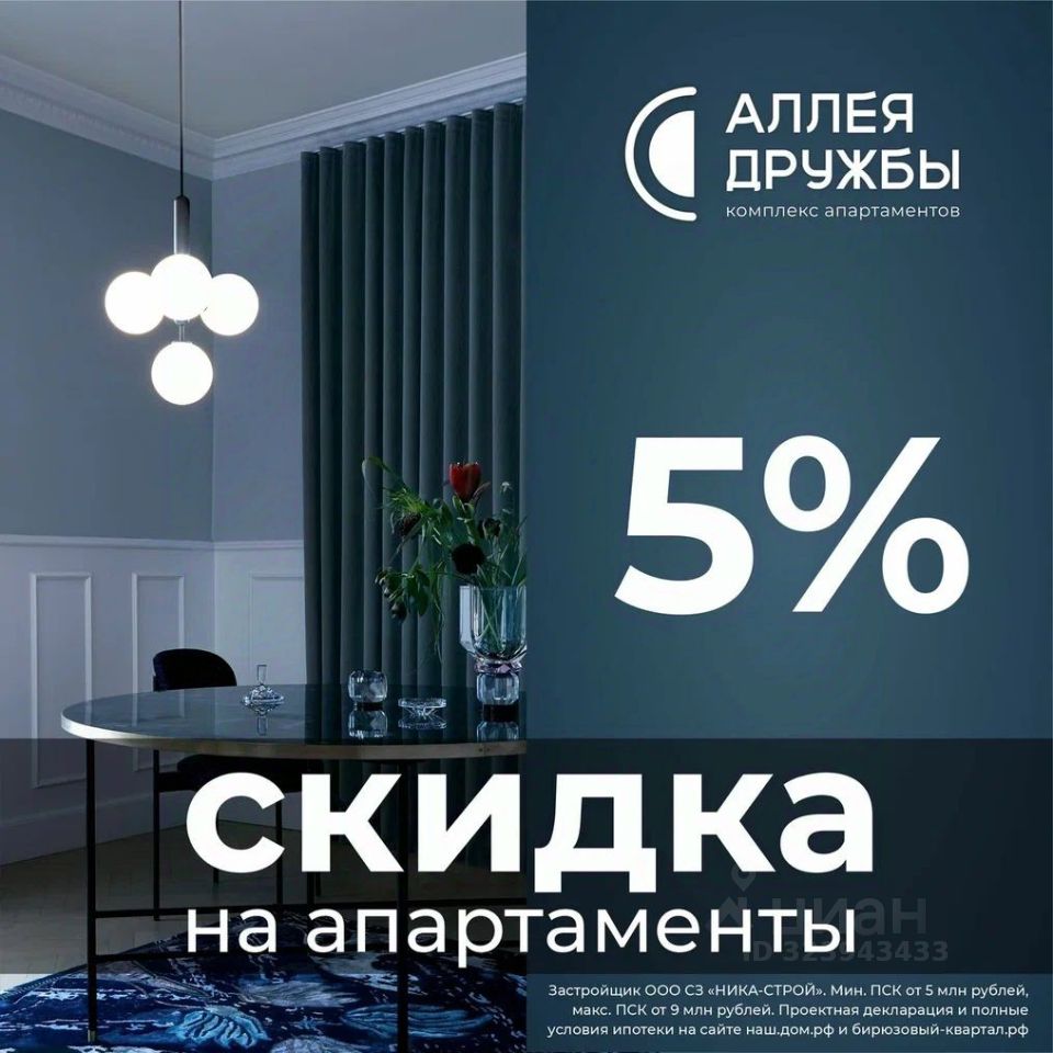 Цена указана со скидкой 5% при условии 100% оплаты либо ипотека.