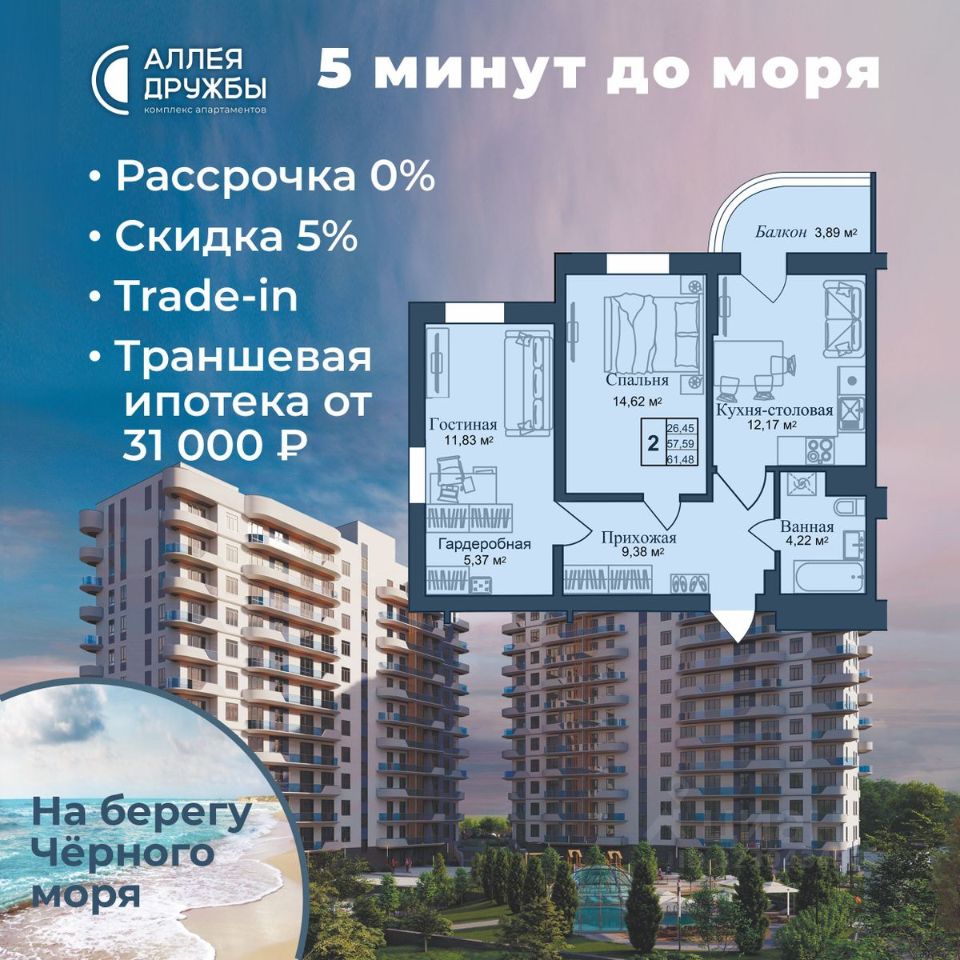 * 5 мин до моря пешком, планировки от 30 кв.м. * Высота потолков 3 м , предчистовая и чистовая отделка * Ипотека от СБЕРБАНКА * Доходность инвестиций от 30% годовых. * Сдача в аренду от управляющей компании (доверительное управление) позволяет получать доход от сдачи апартаментов без вашего участия * Безопасная сделка по ФЗ-214/эскроу-счёта