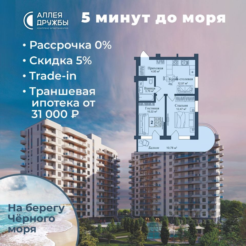 * 5 мин до моря пешком, планировки от 30 кв.м. * Высота потолков 3 м , предчистовая и чистовая отделка * Ипотека от СБЕРБАНКА * Доходность инвестиций от 30% годовых.
