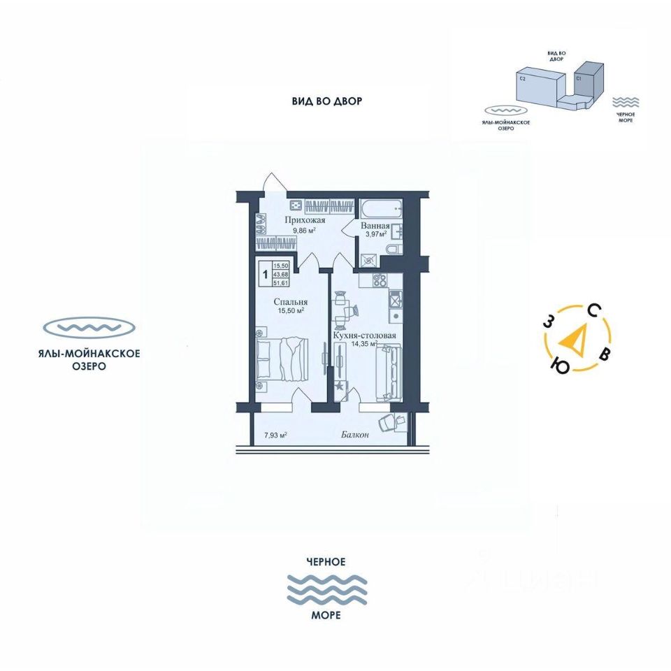 Общая площадь51,61 м2