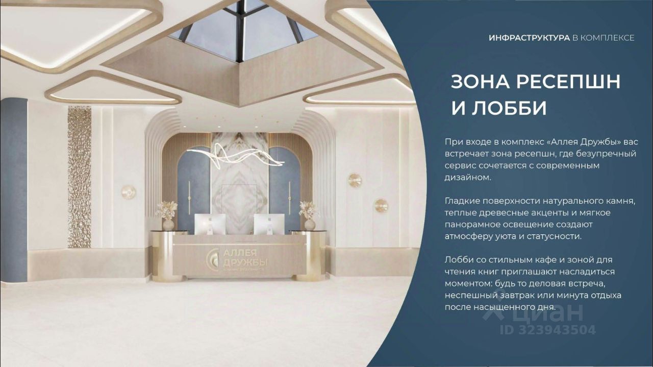 ГОСТЕПРИИМСТВО И БЕЗУПРЕЧНЫЕ СЕРВИСЫ: •Управляющая компания премиум-класса •Консъерж-сервис 24/7 •Доставки продуктов и готовой еды •Зона ресепшн оформлена в стилистике комплекса •Лобби с атмосферным кафе и зонами для чтения •Премиальное решение для мест общего пользования •Интерактивная детская комната для самых маленьких •Пункты выдачи товаров от маркетплейсов •Гостевые парковочные места •Организовано место для хранения колясок ваших малышей •Ремонт на выбор ''Комфорт-формат'' и ''Гранд-формат''