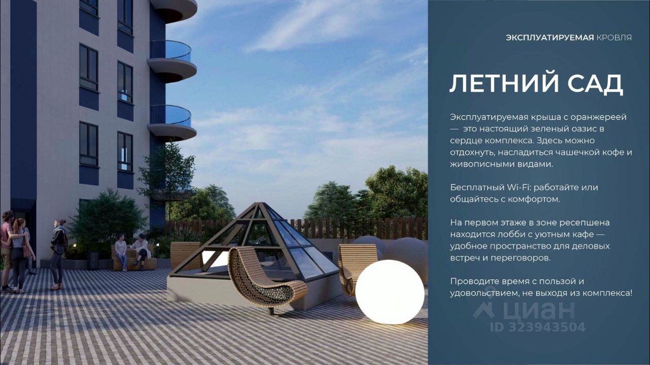 БЛАГОУСТРОЙСТВО ТЕРРИТОРИИ: •Ландшафтный дизайн по проекту (2 334 м² озеленения) •Прогулочные аллеи и зоны отдыха для расслабления и медитации •Коворкинг-зоны с высокоскоростным Wi-Fi для бизнес-переговоров •Детские и спортивные площадки •В апарт-комплексе вас ждут мини-маркет и магазин повседневных товаров •Специальное пр