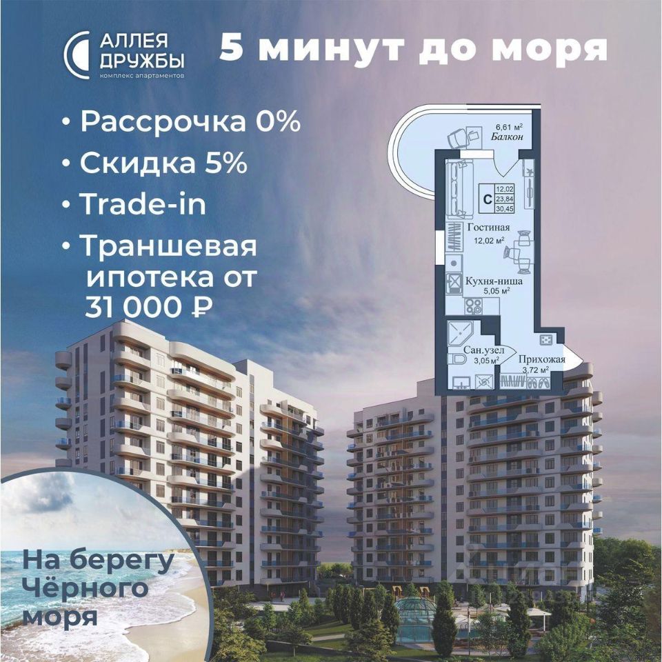* 5 мин до моря пешком, планировки от 30 кв.м. * Высота потолков 3 м , предчистовая и чистовая отделка * Ипотека от СБЕРБАНКА * Доходность инвестиций от 30% годовых. * Сдача в аренду от управляющей компании (доверительное управление) позволяет получать доход от сдачи апартаментов без вашего участия * Безопасная сделка по ФЗ-214/эскроу-счёта