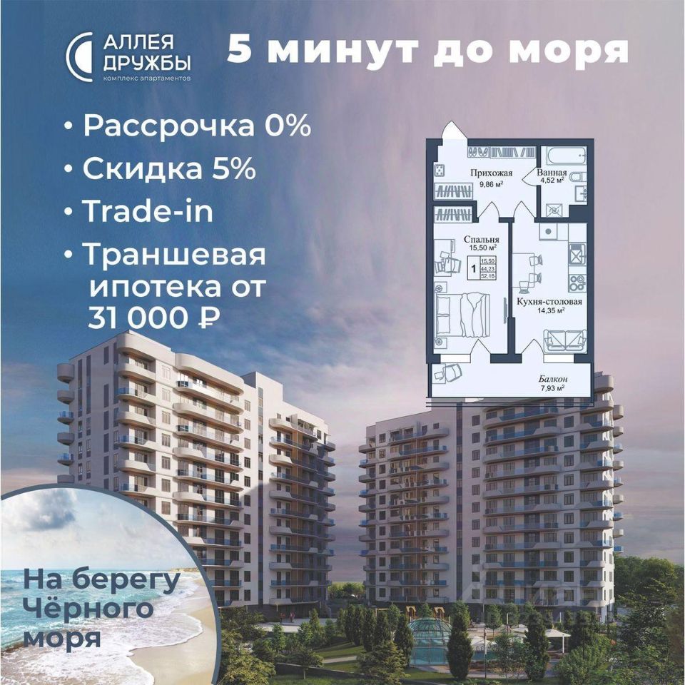 * 5 мин до моря пешком, планировки от 30 кв.м. * Высота потолков 3 м , предчистовая и чистовая отделка * Ипотека от СБЕРБАНКА * Доходность инвестиций от 30% годовых. * Сдача в аренду от управляющей компании (доверительное управление) позволяет получать доход от сдачи апартаментов без вашего участия * Безопасная сделка по ФЗ-214/эскроу-счёта