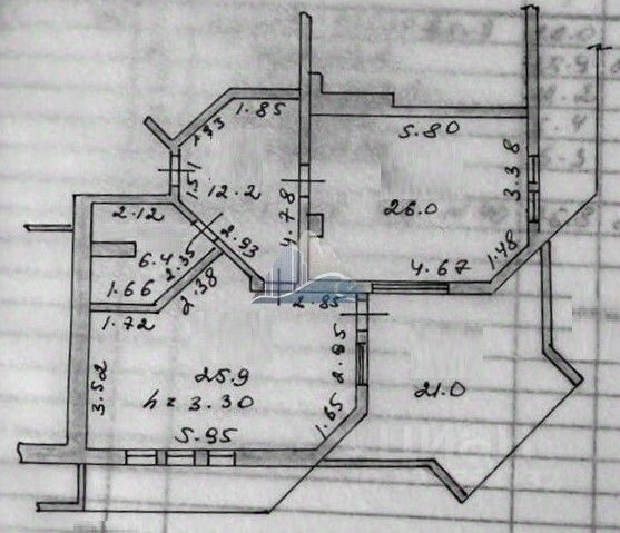 Квартира с ремонтом общей площадью 91 кв.м, из которых балкон - 21 кв.м. Высота потолков 3,5 кв.м.