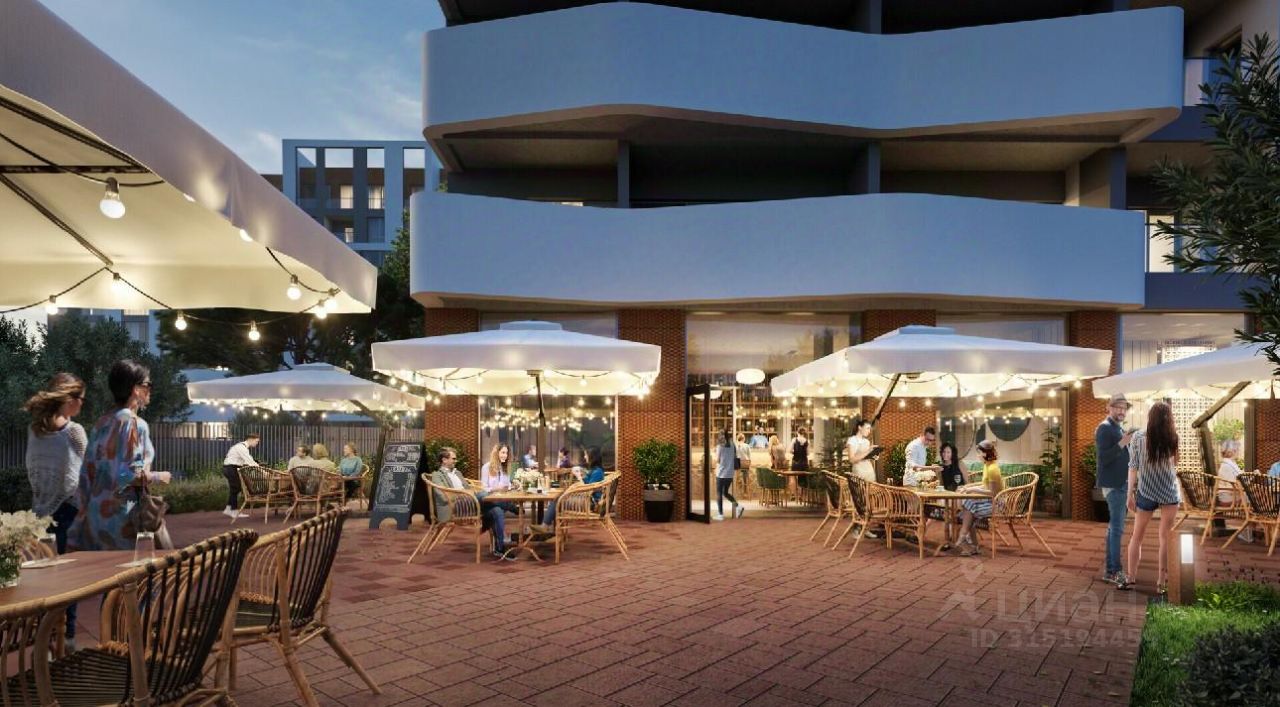 Уличный стрит-ритейл насыщает жизнь в жилом комплексе в течение дня. Кафе и рестораны могут размещать посадочные места вдоль фасадов, привлекая посетителей.