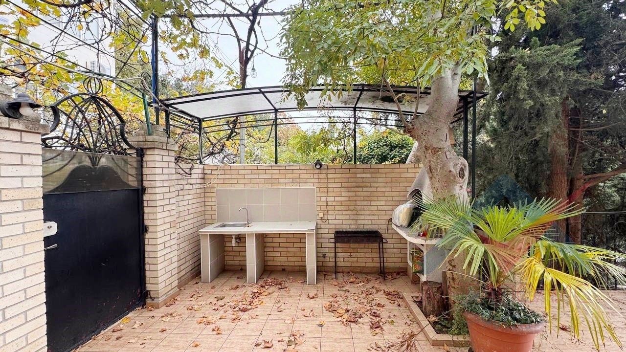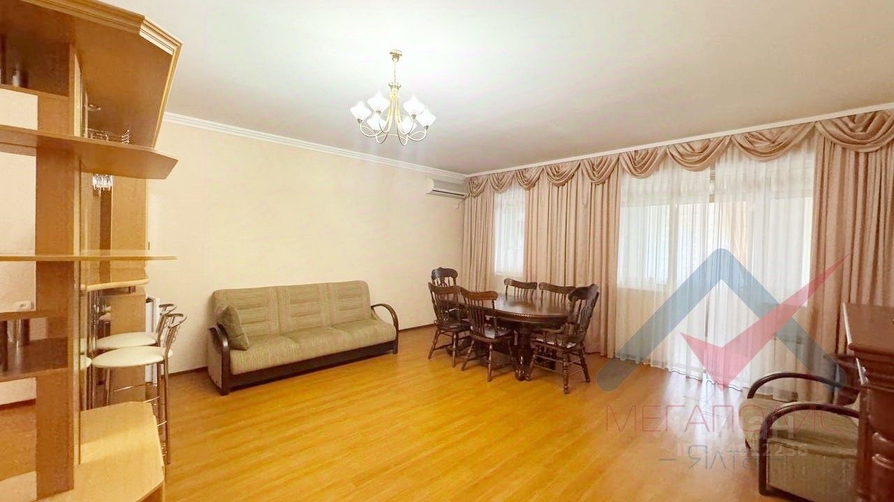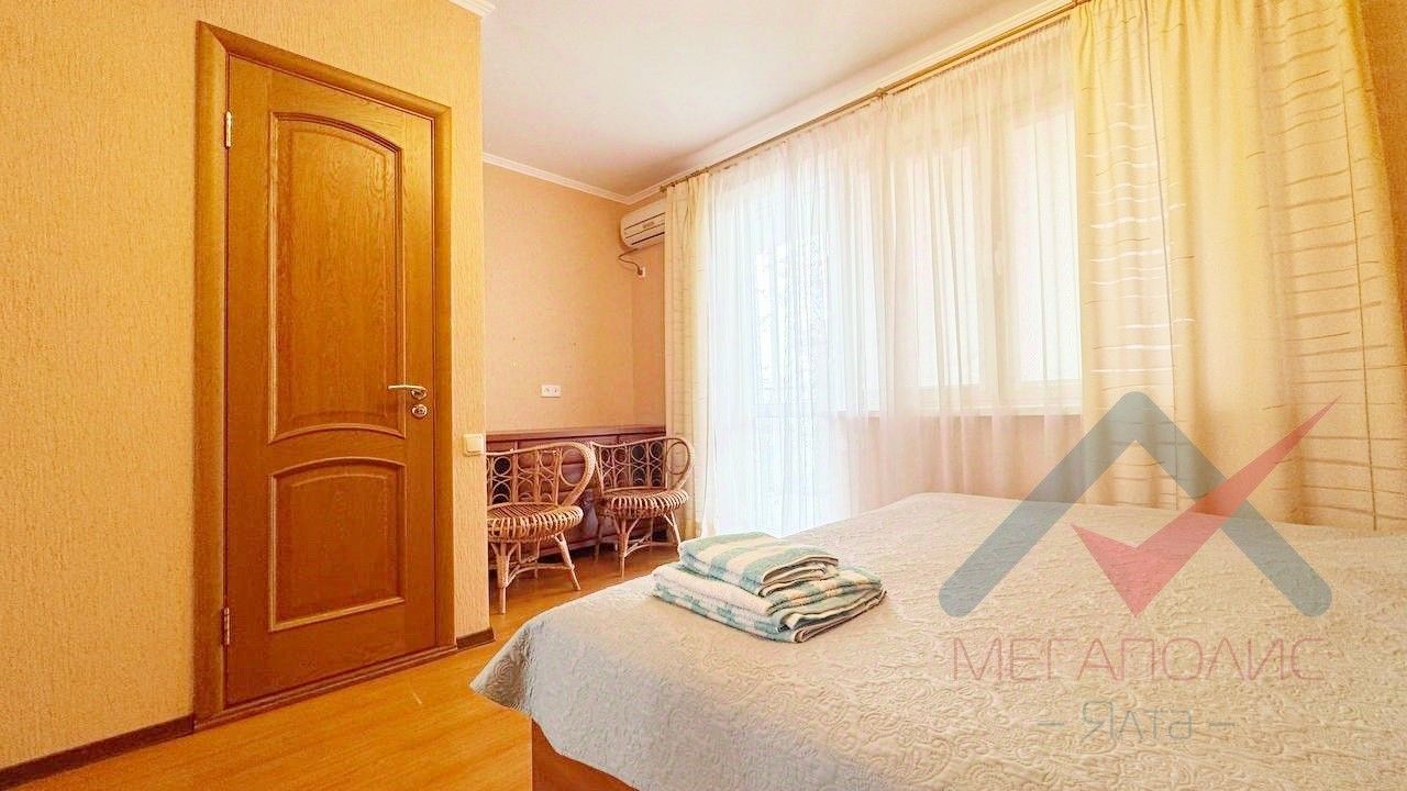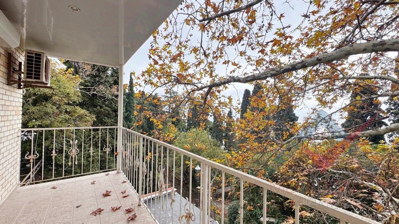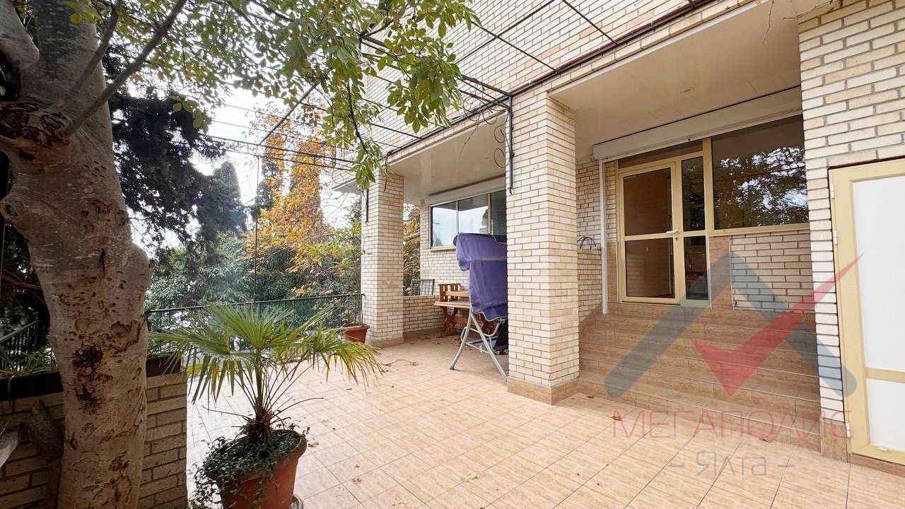 Предлагается к покупке шести комнатная квартира в городе Ялта, в Отрадном на улице Мориса Тореза, рядом с Набережной и морем. Квартира общей площадью 291,4 м2 занимает два этажа трехэтажного многоквартирного дома. Планировка квартиры включает в себя четыре изолированные спальни (две из которых оборудованы совмещенными санузлами, а одна имеет выход на открытую террасу с видом на парк и море), большой совмещенный санузел (относится к двум спальням) и холл расположенных на втором этаже. Планировка первого этажа : входная группа, баня со своим санузлом и купелью, просторную прихожую, кухню с гостиной комнатой, изолированную спальню со своим совмещенным санузлом, просторную веранду где разместили кухню и обеденную зону. Квартира в хорошем жилом состоянии, полностью укомплектована всей необходимой мебелью и техникой. У квартиры есть своя придомовая территория, где разместили летнюю кухню с мангальной зоной. Дом, в котором находится квартира, расположен в пятидесяти метрах от моря. Была произведена реконструкция Набережной и прибрежной линии. Так же рядом с домом расположен парк. В шаговой доступности несколько магазинов, в летний период на территории пляжа функционируют кафе. Дорога до центра Ялты займет около 10 минут езды на машине.