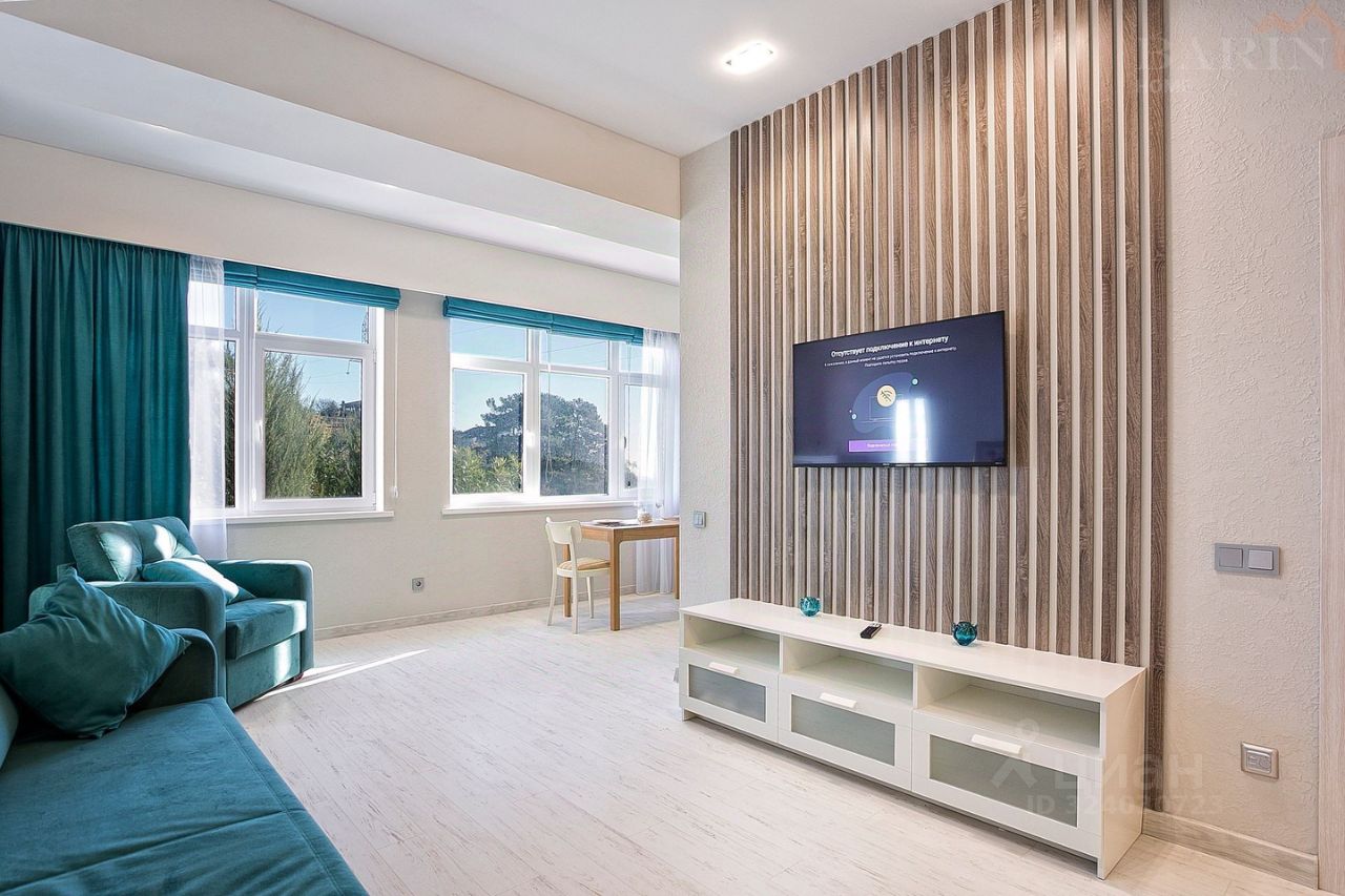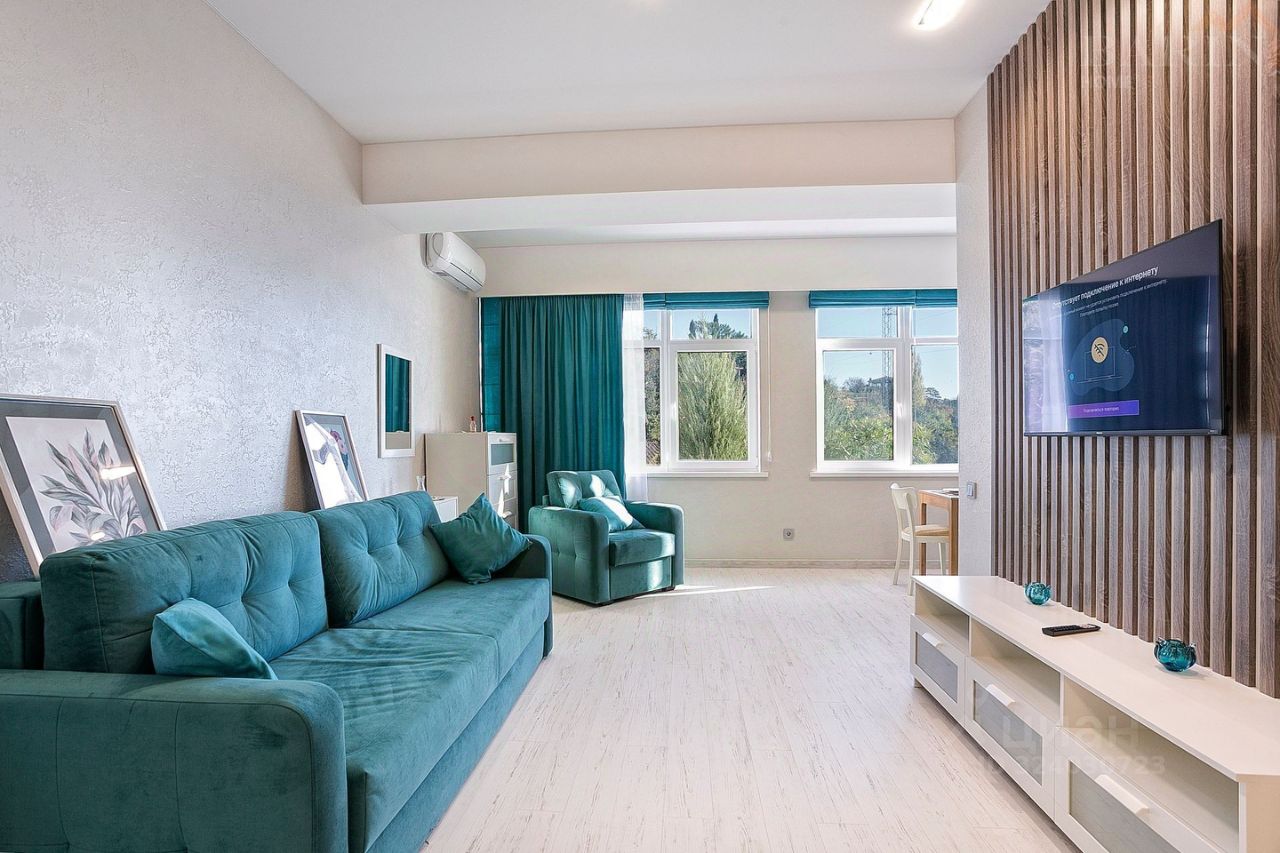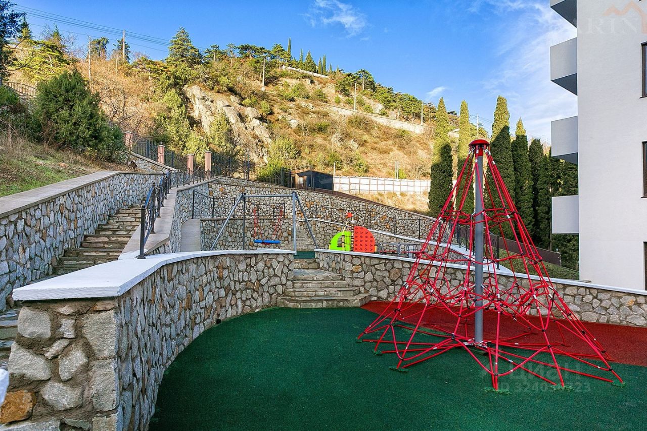 Из окон открывается боковой вид на море, боковой вид на горы и фронтальный вид на зелёный район, застроенный виллами. Квартира расположена на первом этаже, но первый этаж высокий. Под окнами огромная клумба, в которой высажены красно-книжные деревья и реликтовые многолетние кустарники. Клумба шириной 4 метра придаёт квартире дополнительное пространство. Если в клумбе высадить 4-5 пальм вид из окон на тропическую клумбу будет создавать дополнительное ощущение тропиков. В квартире выполнен новый ремонт, завершили делать ремонт летом 2025 года. Квартира полностью укомплектована мебелью и техникой, необходимой для комфортабельного проживания. В подъезде очень длинный коридор шириной в 2,8 метра, в котором можно установить встроенные корпусные шкафы как дополнительная система хранения вещей.