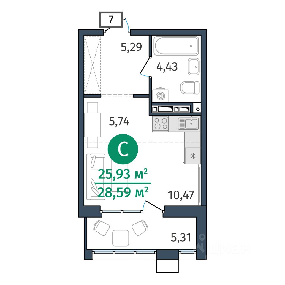 Общая площадь25,93 м2
