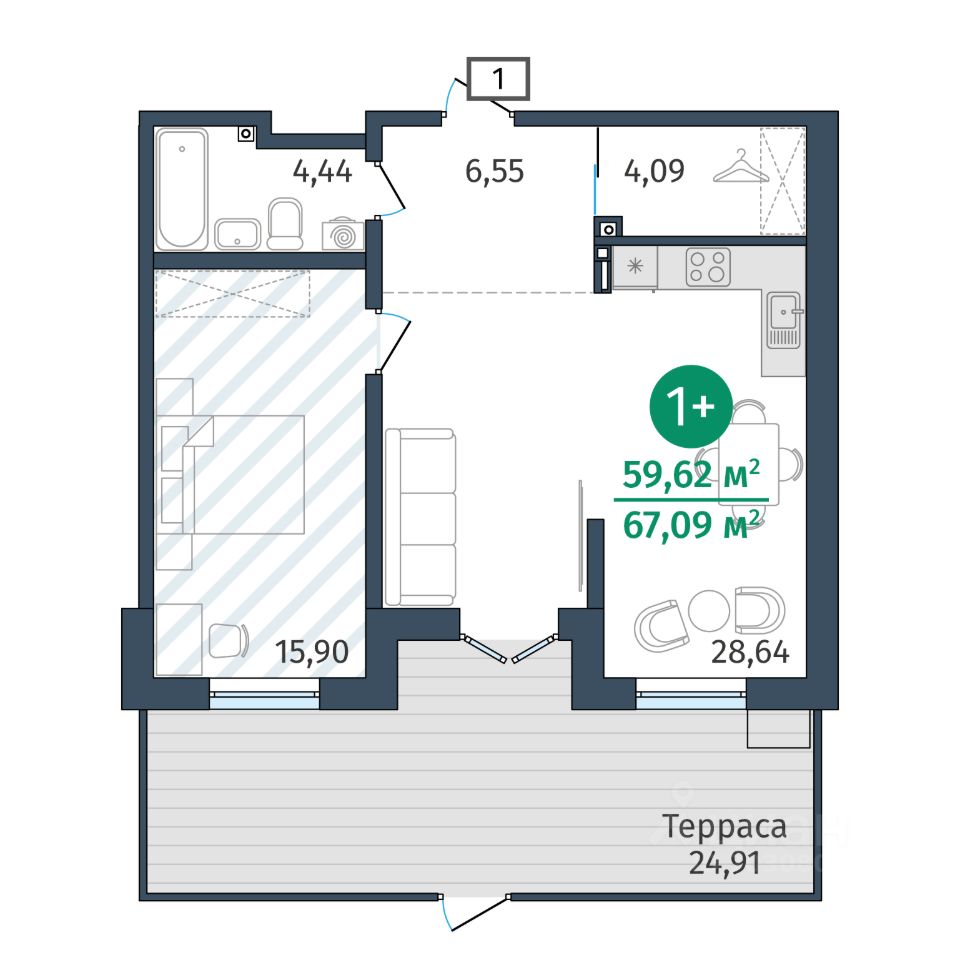 продам 1-к, Сергея Джанбровского, 27 корп. 27 719 000 ₽