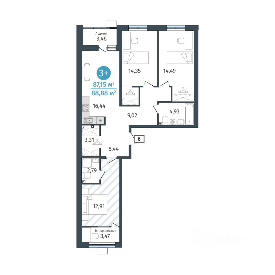 продам 3-к, Тюменская, гп 2.49 345 000 ₽