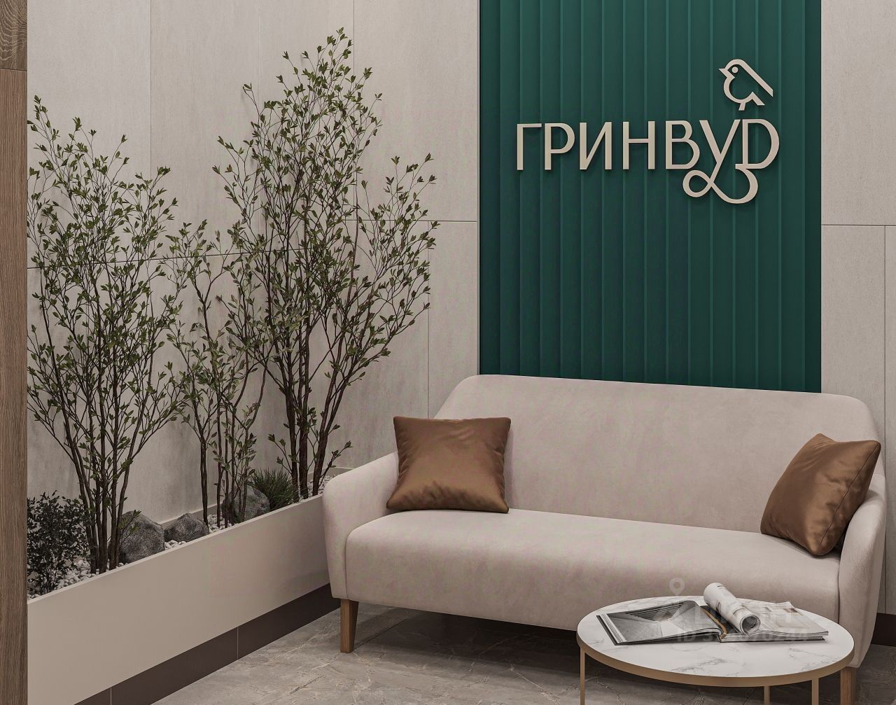 ''Гринвуд'' в переводе с английского означает ''зеленый лес''. Это отражает концепцию ЖК: микрорайон с собственным лесопарком. Архитекторы спроектировали микрорайон по принципу ''зеленого каркаса''.
