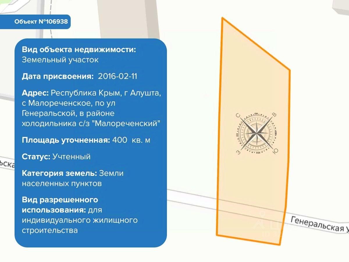 Продается земельный участок в селе Малореченское (Алушта) улица Генеральская.