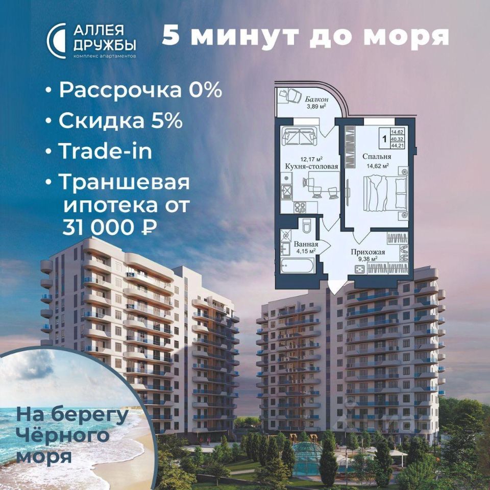 * 5 мин до моря пешком, планировки от 30 кв.м. * Высота потолков 3 м , предчистовая и чистовая отделка * Ипотека от СБЕРБАНКА * Доходность инвестиций от 30% годовых. * Сдача в аренду от управляющей компании (доверительное управление) позволяет получать доход от сдачи апартаментов без вашего участия * Безопасная сделка по ФЗ-214/эскроу-счёта