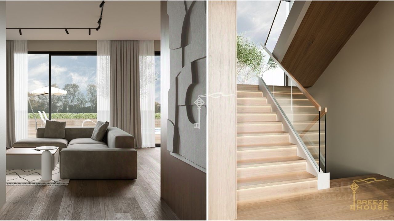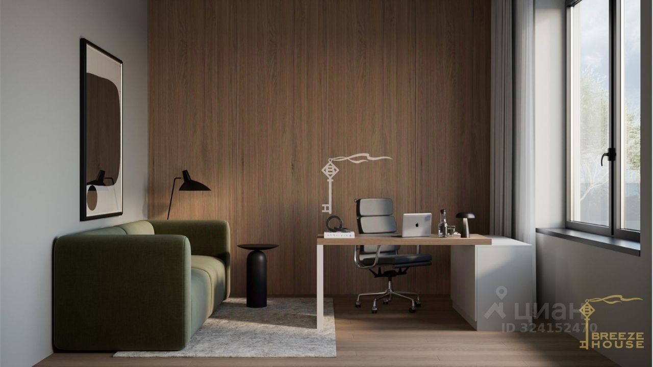 -Просторная кухня-гостиная с выходом на террасу, -Три спальни, -Кабинет, -Гардеробная, -Четыре санузла, -Топочная.