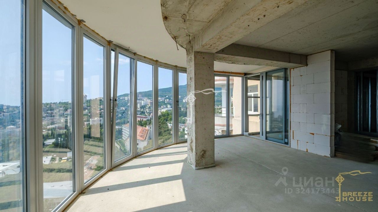 Продаётся просторная 4-комнатная квартира под отделку с панорамным видом на море, горы и город в ЖК ''Вершина успеха'' в 800 метрах от набережной Ялты.