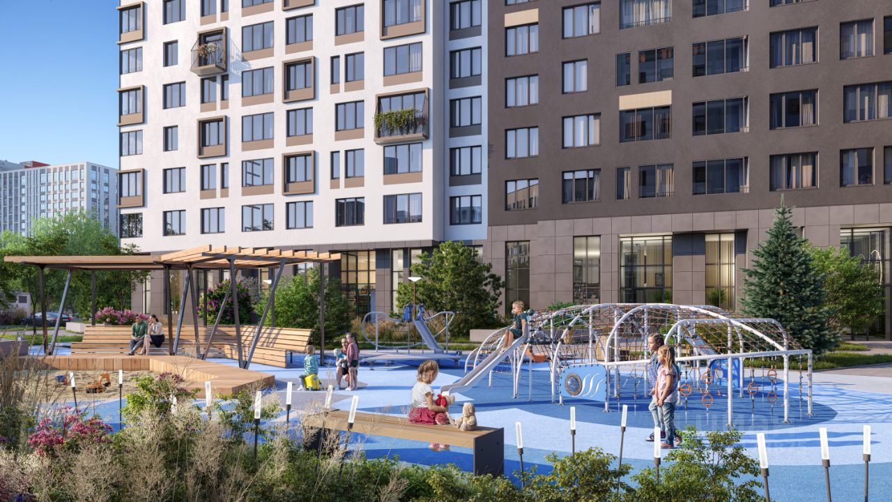 На территории квартала планируется: видеонаблюдение 24/7, подземный паркинг с доступом на лифте, кладовые, велодорожки, многоуровневое озеленение, workout зоны для уличного фитнеса, детские игровые комплексы.