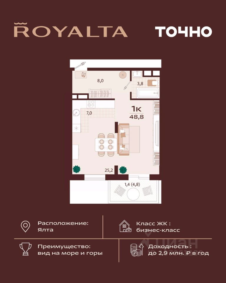 продам 1-к, Ялта21 960 000 ₽