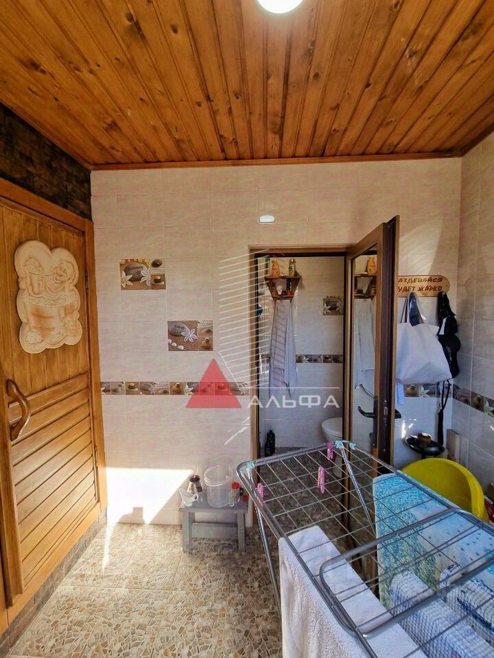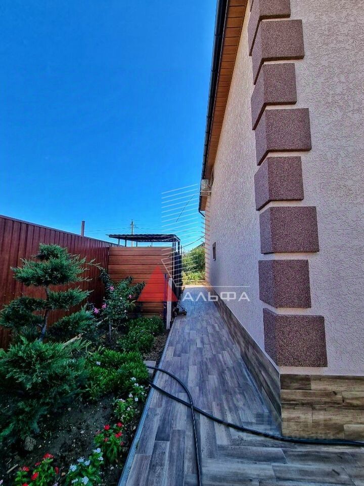 Объект 1509. Продаётся дом общей площадью 137,4 м² на земельном участке 7 соток в с.Заозёрное Сакского района, что в 20 км от города-курорта Евпатории. До моря 700 м. Остаётся абсолютно вся мебель и техника. Двор полностью облагорожен. На территории есть сад, вольер для собаки или для хранения чего-либо, гараж, баня, беседка и летняя зона барбекю (возможно застеклить и сделать зимний вариант). На участке высажен большой фруктовый сад: персики разных сортов, кизил, киви, гранат, малина, клубника, яблони. В зоне барбекю проведена вода, холодильник, американское барбекю и мангальная зона. Просторный гараж 29,7 м² со множеством полок и инструментов. Настоящая русская баня на дровах, которая будет радовать вас, ваших друзей и близких в любое время. Коммуникации все в доме: канализация - септик, вода центральная и есть скважина, дополнительно установлен нагреватель для воды на 120 л, установлена очистительная система для воды ( 8 л/час ), отопление электрическое, установлен электрокотел (с возможностью замены на газовый), газ - на соседней улице (есть проект). Тёплые (водяные) полы по всему первому этажу. Дом построен из природного камня-ракушечника, утеплён минватой снаружи и внутри, а также между этажами. Потолок обшит деревом. Первый этаж: прихожая, где можно свободно разместить обувь и верхнюю одежду, кухня 22,3 м². (мебель выполнена на заказ, качественные и новые стиральная машина, холодильник, духовой шкаф), санузел совмещённый, установлена большая цельная ванна на 120 л, гостиная: отличное место отдыха для большой семьи 23,3 м² (большой современный телевизор, кондиционер, кресло-качалка и мебель - всё остается покупателю), гардеробная (4,5 м²). На второй этаж ведет лестница из дуба (выполнена на заказ). Под лестницей есть небольшая кладовая. Второй этаж: 3 комнаты с кондиционерами, санузел, гардеробная. Все документы готовы к продаже.
