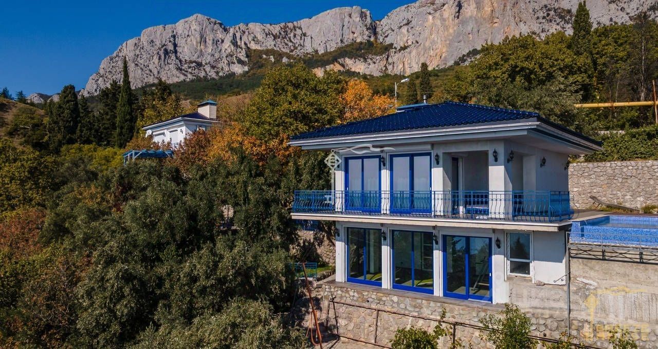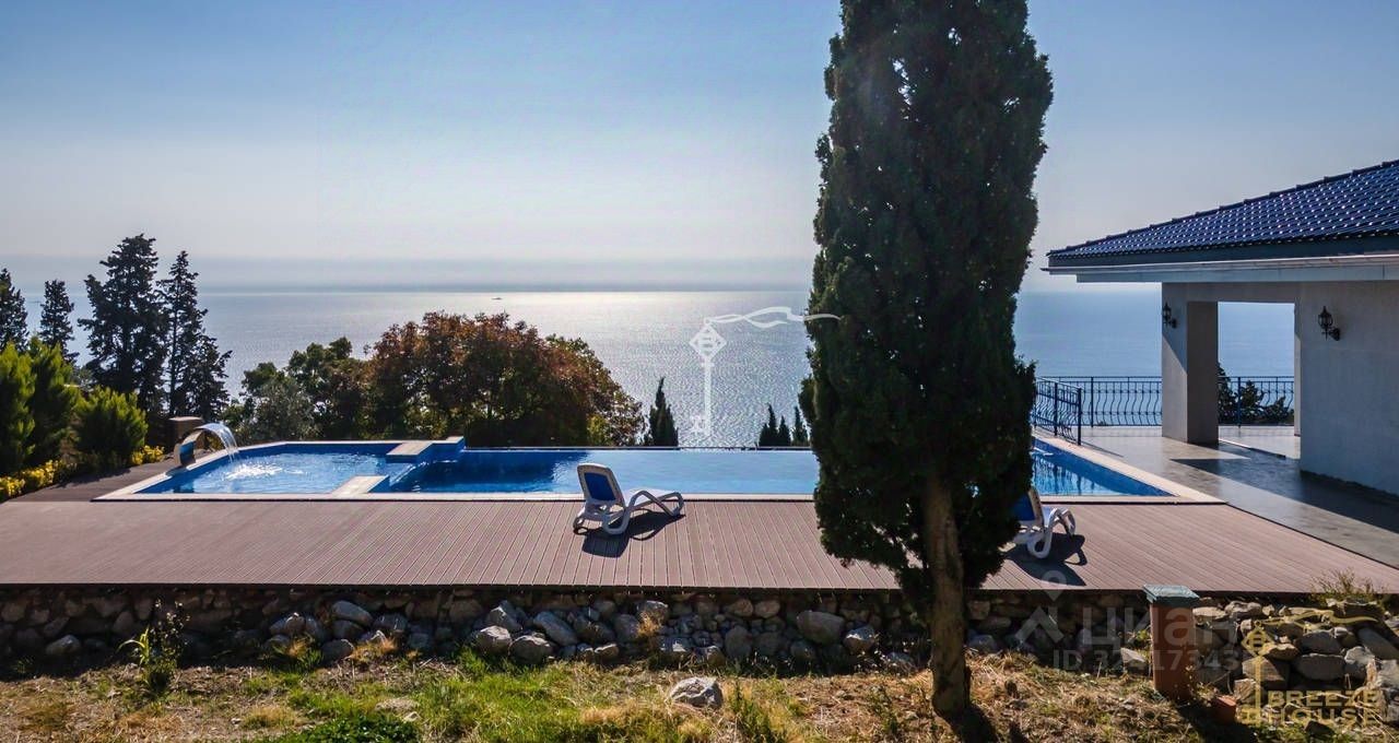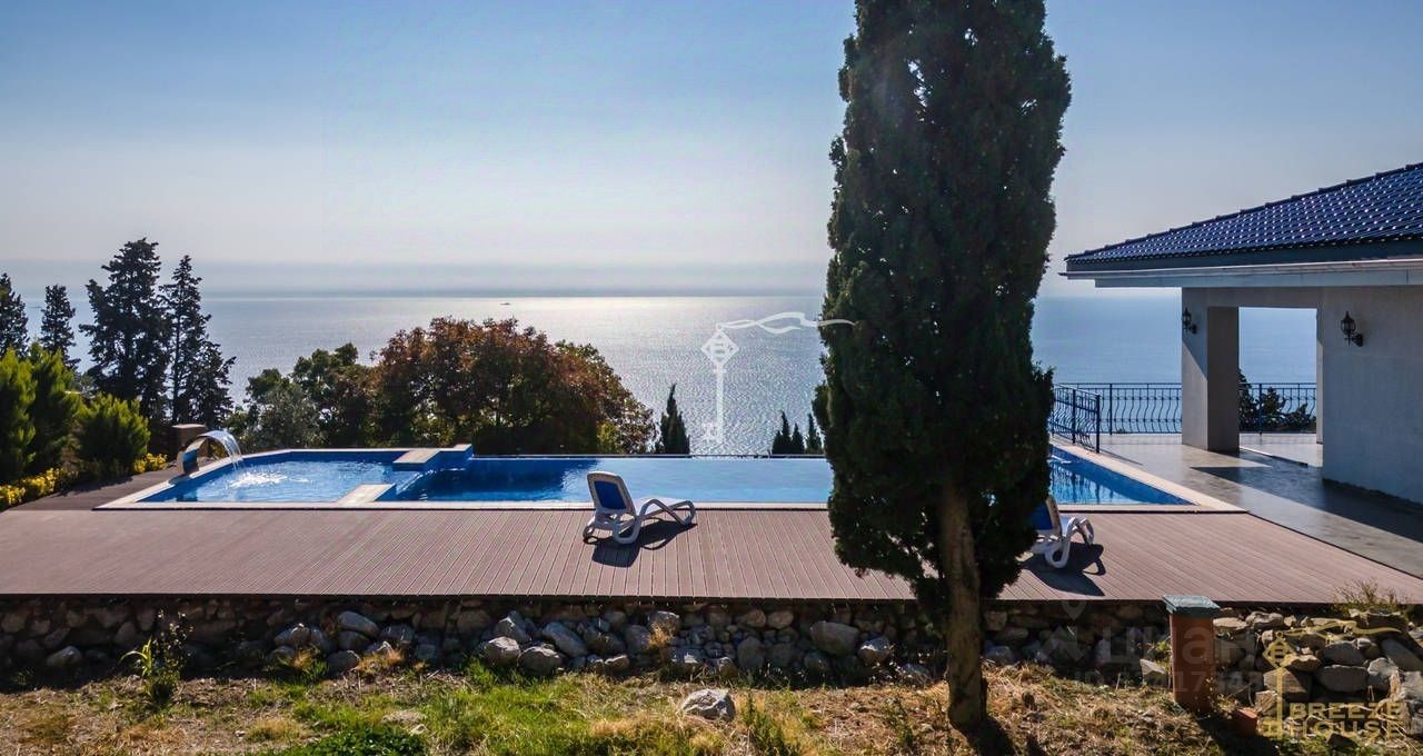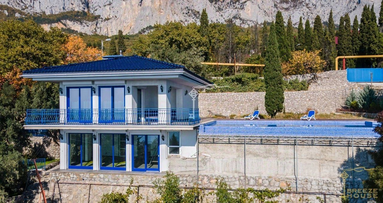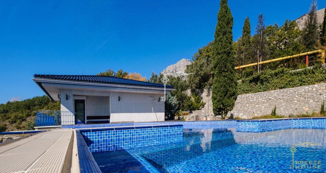 Продажа двухэтажного дома с бассейном, на участке 25 соток в живописном поселке Береговое. С террас дома открываются впечатляющие виды на море и гряду скалистых гор Ай-Петри.