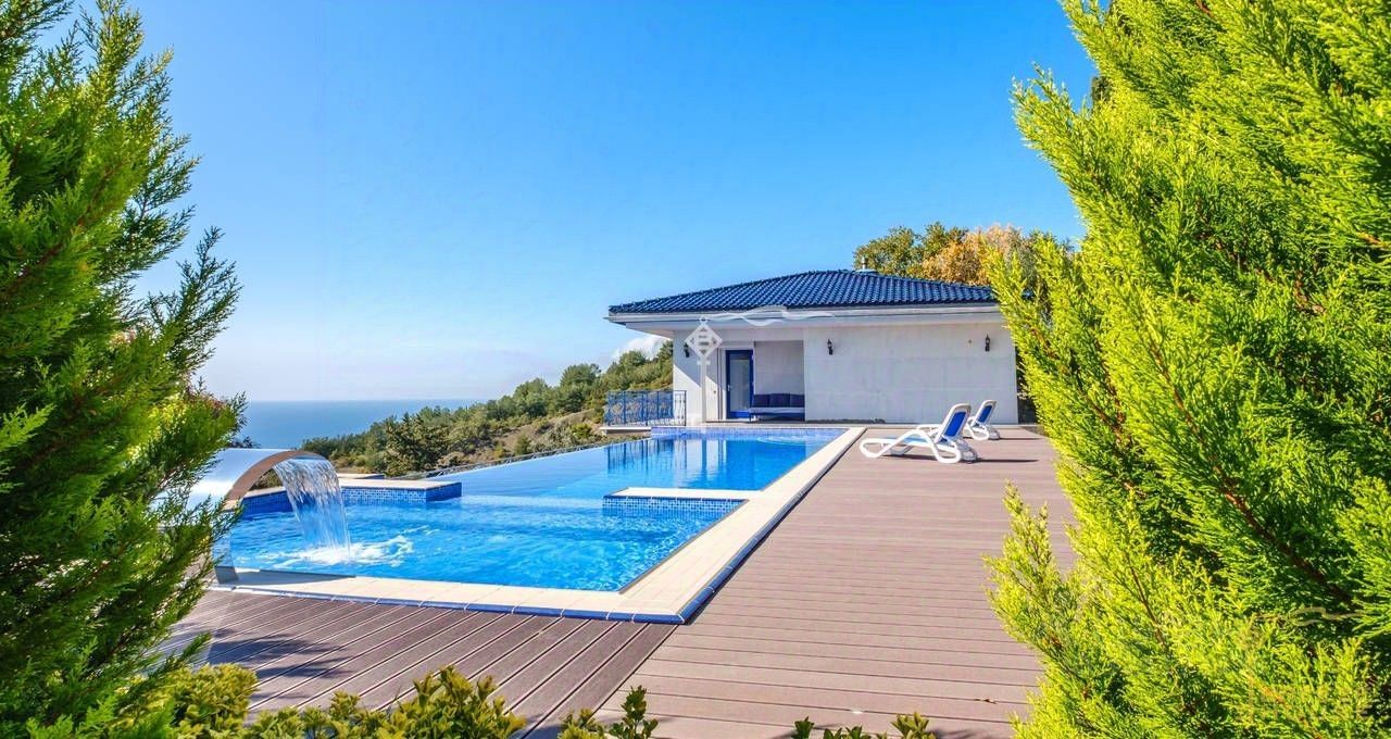 Перед домом - взрослый и детский бассейн с морской водой и противотоком с потрясающим видом на море. Вокруг бассейна уложен немецкий полнотелый суперкачественный декинг.