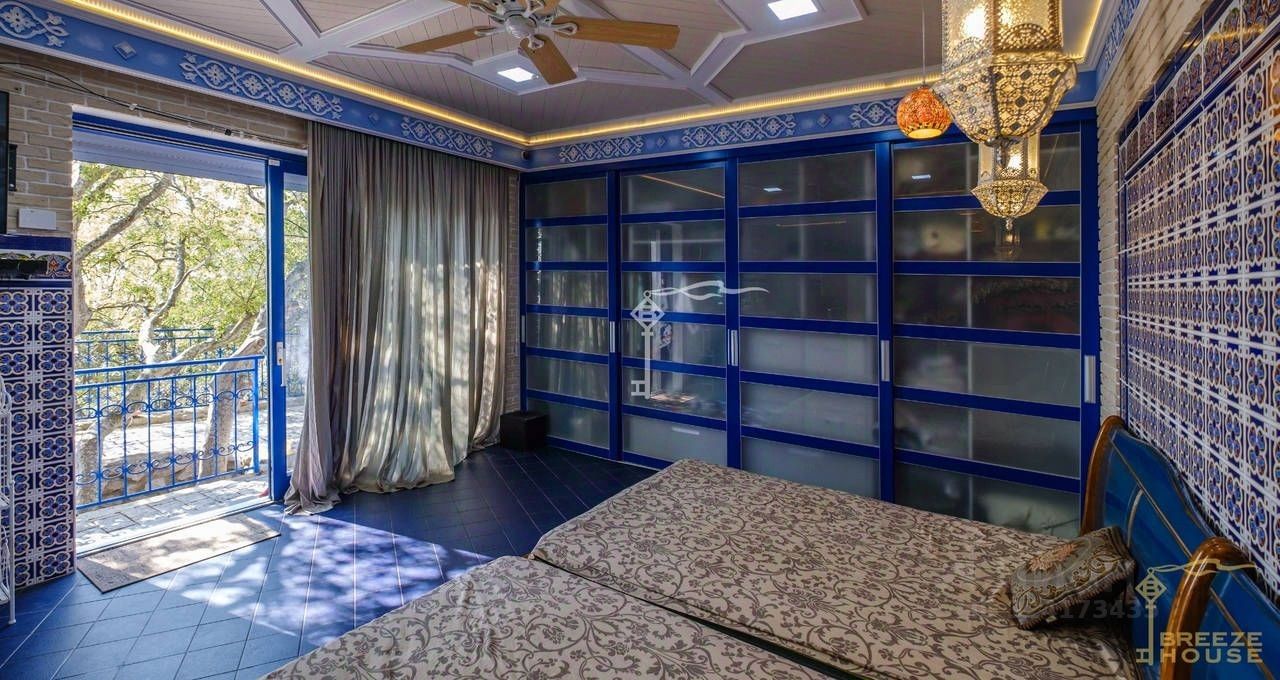 -Стены дома выполнены из ракушечника, кирпича и утеплены толстым стеновым пенопластом. Отделочные материалы закупались в Европе, преимущественно в Испании, -Оконный профиль из натурального дуба, немецкие металлические отливы, -Внутренние стены гостевого дома отделаны дорогим клинкерным кирпичом, потолки натуральным деревом, интерьерная плитка покупалась на выставке в Испании. Кровати ручной работы также из Испании. Коммуникации:
