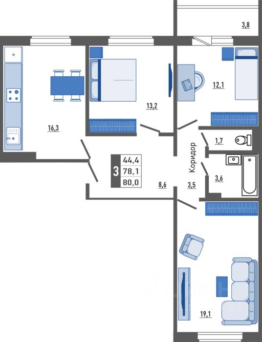 Продаётся 3-комнатная квартира в строящемся доме (Корпус 1), срок сдачи: II-кв. 2028, общей площадью 80 кв.м., на 15 этаже. Новый жилой комплекс ''Поколения'' от застройщика ''ОДСК'' расположен по адресу Орловская область, Город Орёл, Улица Льва Толстого.