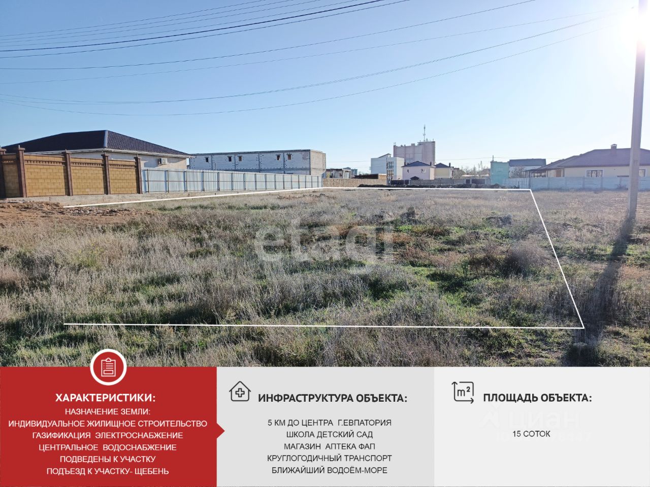Продаётся земельный участок в пгт Заозерное, городской округ Евпатория, общей площадью 15 соток.